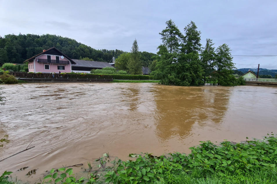 Auch wurden in der Nähe des Sportplatzes Oberhaag bereits Überflutungen gemeldet. Die B69 Richtung Eibiswald musste